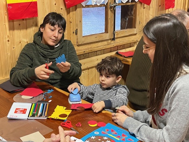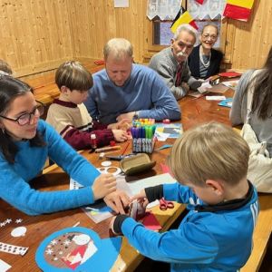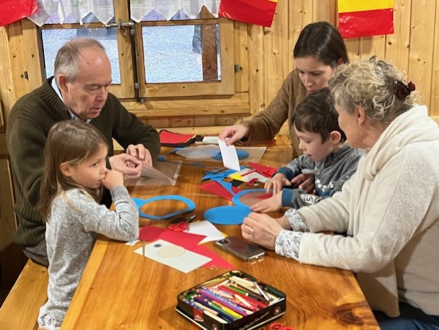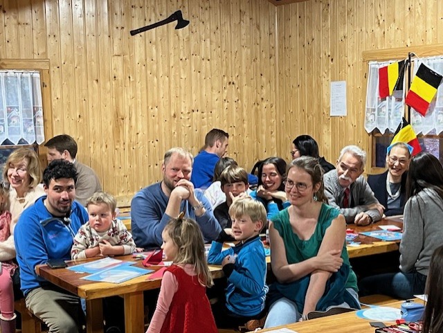 Attiré par les mélodies du galoubet provençal et du cor des Alpes sous une drache bien belge, quelle heureuse surprise attendait Saint-Nicolas le dimanche 7 décembre ! 23 enfants de quelques mois à 12 ans accompagnés de leur famille étaient rassemblés pour l'accueillir dans la chaleur bienfaisante de l'âtre du pittoresque Refuge du Chaugand à Epalinges. Les conteuses de l'Oreille qui Parle étaient également venues en renfort pour faire rêver les enfants. Bricolages variés, délicieuses gaufres belges faites maison, thé de Noël et vin chaud accompagnaient l'ambiance bien festive qui régnait! Tous nos remerciements à Chantal, Eric, Martine, Patricia, Sarah, Saint-Nicolas et Toni!