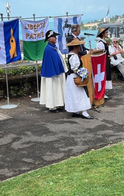 A Montreux, Anthony Huys, le fidèle et digne porte-drapeau, Yolande Dupret, la présidente, et deux membres de la SRUB-L, Léon Cerise et Xavier Steyer ont suivi la cérémonie et le discours du syndic M. Olivier Gfeller devant la Stèle du Soldat. Ensuite ils ont intégré le cortège jusqu’à la Place couverte du Marché au bord du Lac. De sociétés locales et milices vaudoises, des grenadiers et arquebusiers, des groupes folkloriques ont défilé devant une foule enthousiaste au son des fanfares. La manifestation festive s’est terminée par une collation helvétique et un vin d’honneur local au Marché couvert au bord du Lac sous un ciel radieux. Une manière sympathique de nouer des liens avec notre Canton hôte.