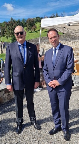 Le 29 août 2025, sous un soleil radieux, à l’occasion de la cérémonie solennelle de la 90e commémoration de la Reine Astrid à Küssnacht, Jacques Samain et Béatrice Wanner ont représenté la SRUB-L, invités par l’Ambassadeur de Belgique, S.E. Patrick Van Gheel, pour rendre hommage à la Reine Astrid.