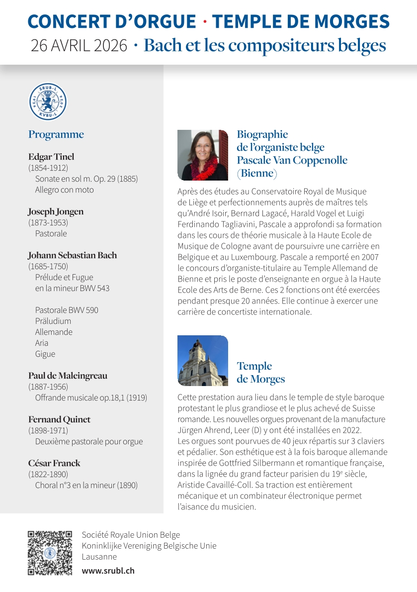 En collaboration avec l’Association des Orgues Arhend de Morges, le comité de la SRUBL organise un concert d’orgues ouvert à tout public dans le Temple de Morges.