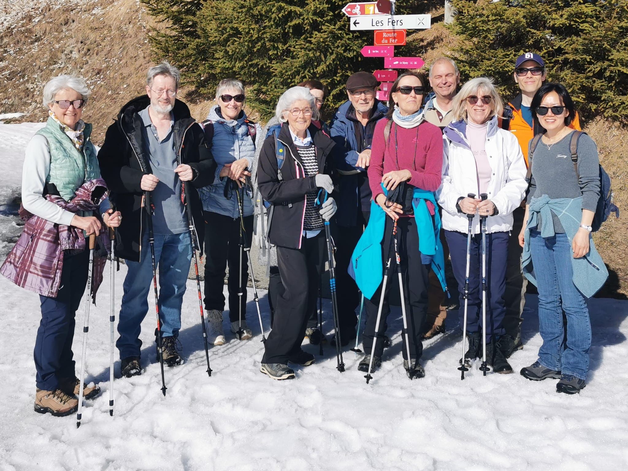 Agés de 6 à 82 ans (public plus large que celui de Tintin !), 29 membres de nos Unions étaient présents. Pendant que certains dévalaient les pistes enneigées en snowboard ou en ski grâce à nos GO’s, les autres découvraient en randonnée, le magnifique panorama empreint de la nostalgie des sanatoriums d’antan, le centre pittoresque ou l’endroit déclencheur du tsunami du Léman en 563. Merci pour les liens sociaux, sportifs, culturels et intergénérationnels qui ont tissé ce moment convivial. Ce fut un délice à tous points de vue !